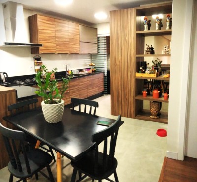 Ficam os móveis sob medida da cozinha, lavanderia e banheiros