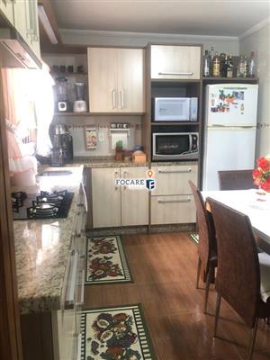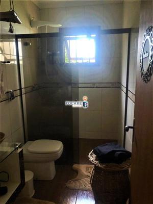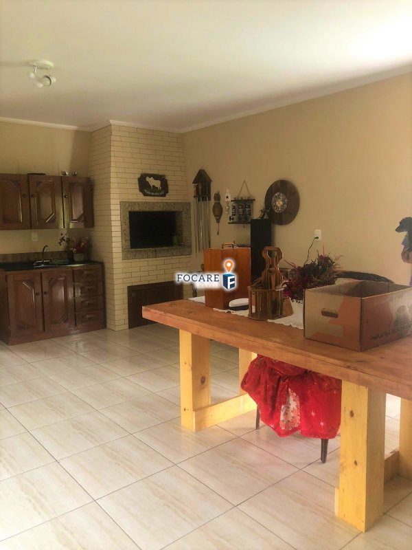 Descrição › Casa com dois dormitórios sendo um suíte, garagem para dois carros, pátio cercado, 2 banheiros, sala, cozinha com móveis sob medida e fogão campeiro, sótão com disponibilidade para mais um quarto.